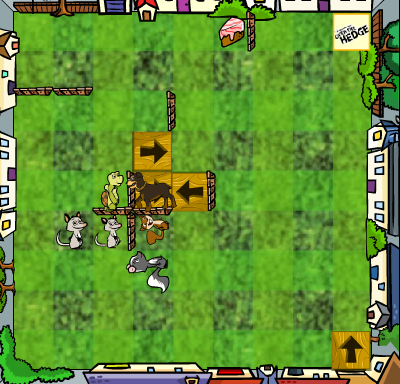 - Characters will go right when they hit the perimeter of the garden and fences.