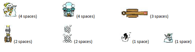 As you know there are 7 pieces you must bomb in Snow Wars. Different pieces take up different amount of spaces.